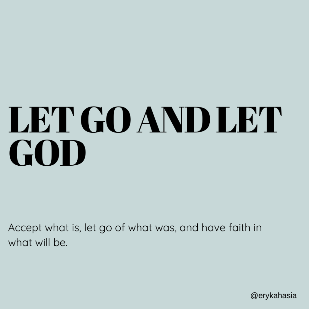 Start the process of letting go of what was, accepting what is and having faith in what will be. If it is a relationship you are letting go of, move on peacefully. Whatever emotion(s) you feel about letting go (anger, bitterness, sadness, etc.) let it out. You don’t have to suppress your feelings. Feel all range of emotions as this is a healthy thing to do. Then start the process of acceptance.